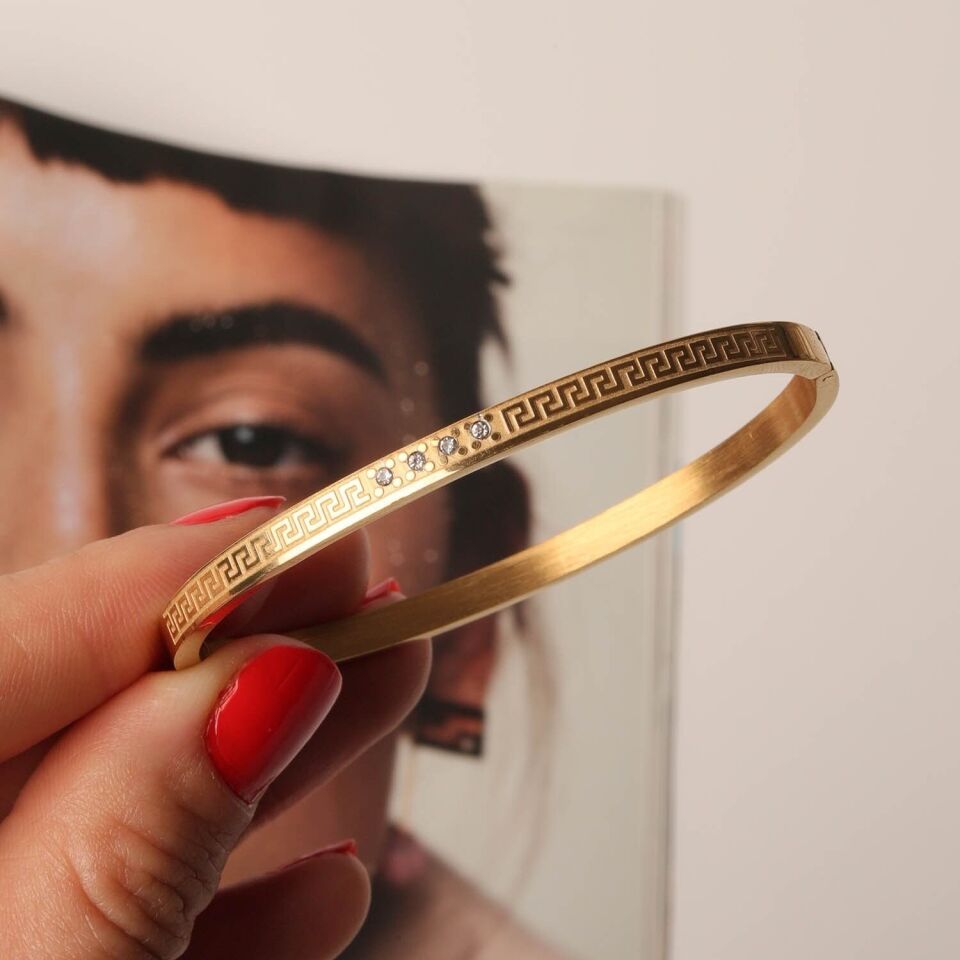 Çelik Gold 4 Taşlı Desenli Kelepçe 6cm