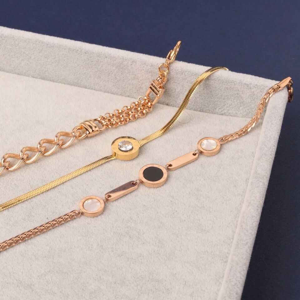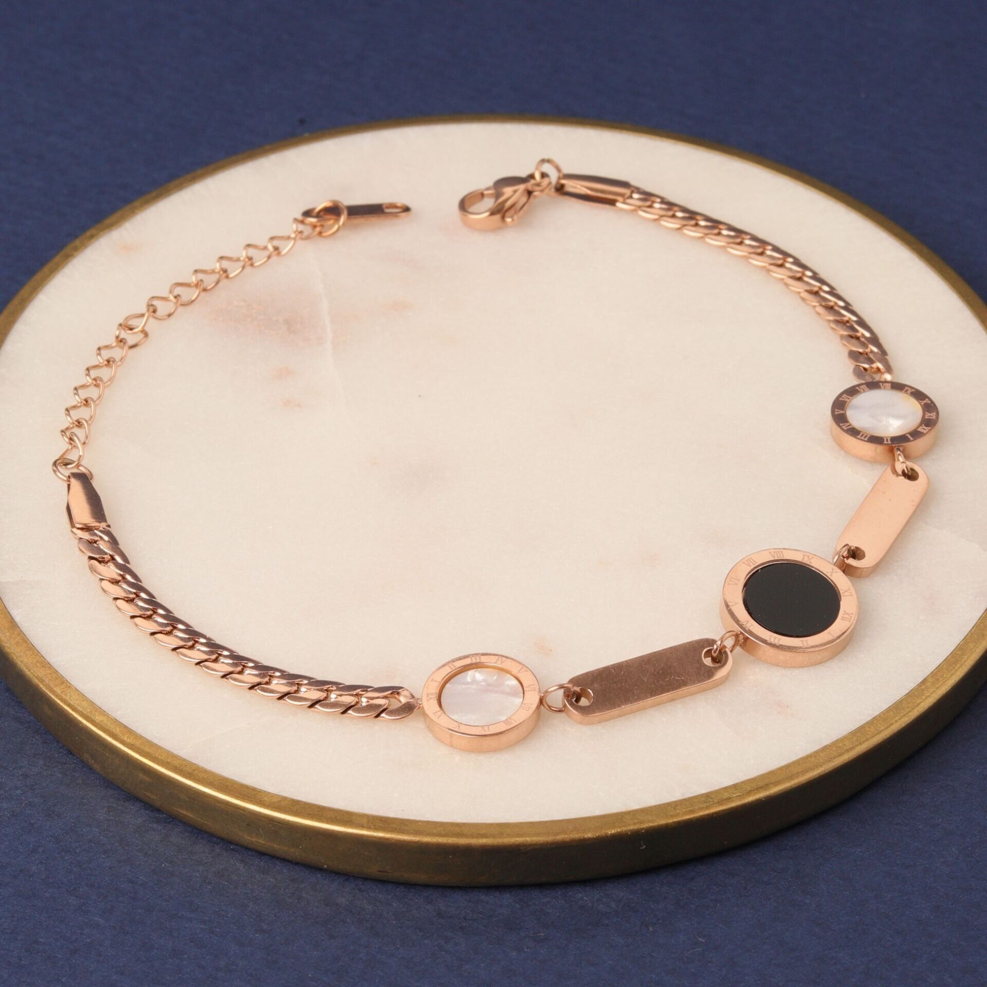 - Çelik Rose Gold Marka Model Siyah Beyaz Sedef Bileklik