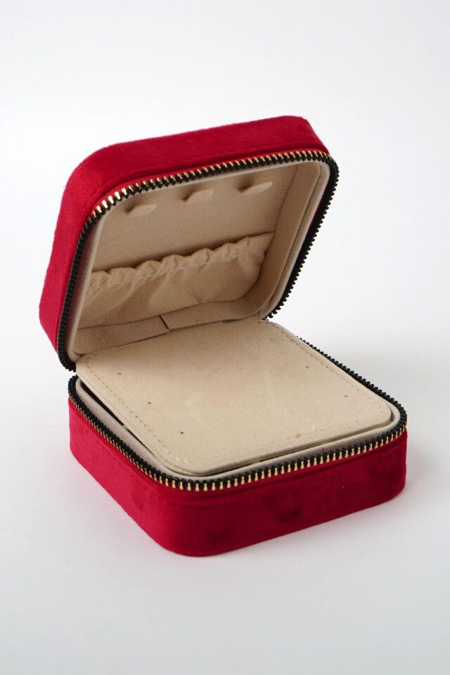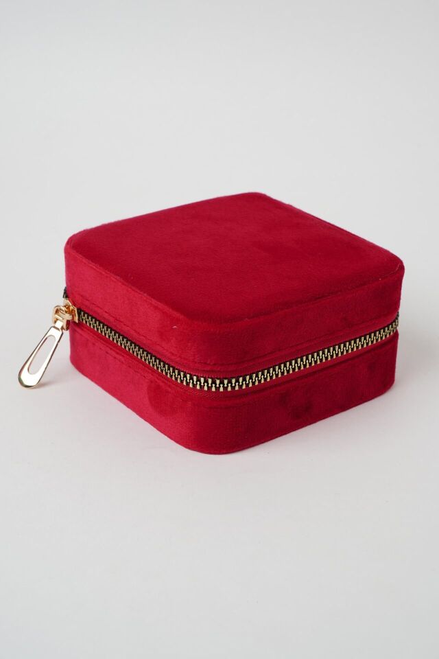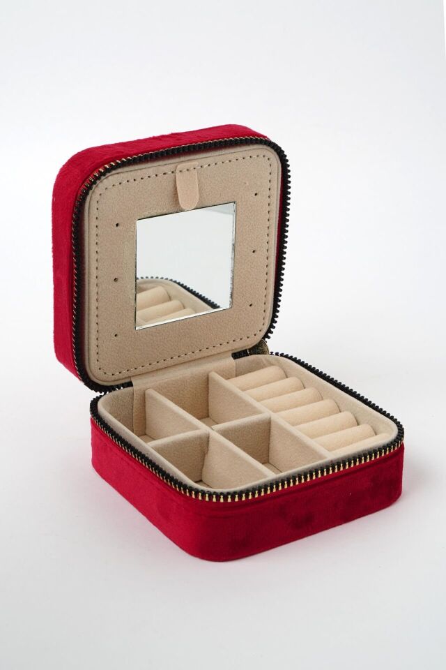 Neesa Aynalı Kadife Takı Çantası 10x10x5cmGri Kırmızı