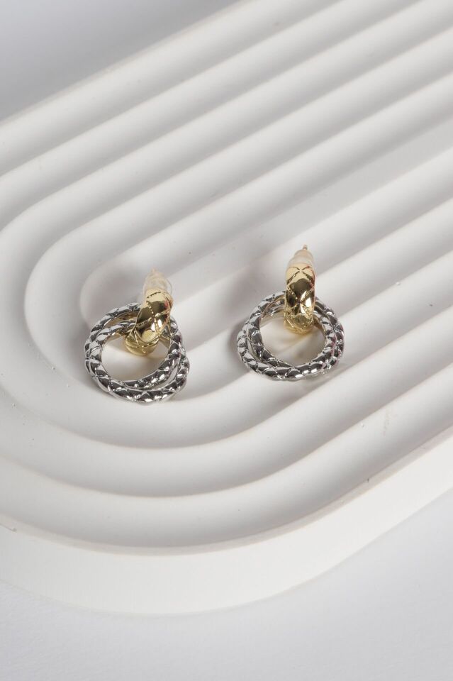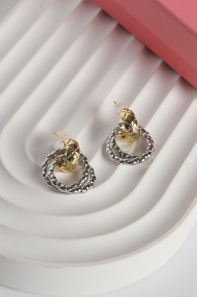 Neesa Çelik Çift Halkalı KüpeSilver-Gold