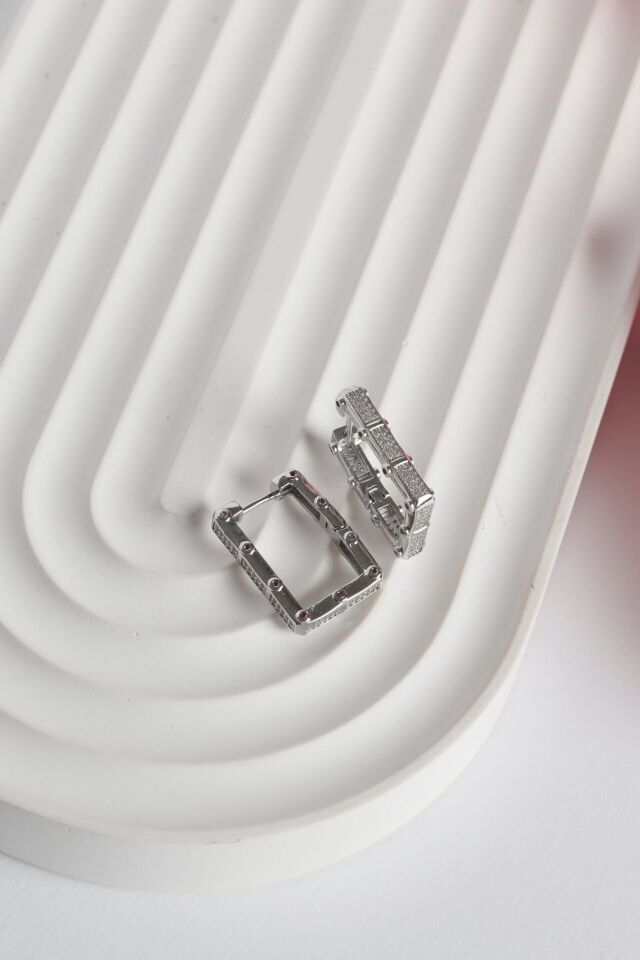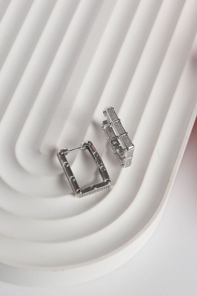 Neesa Çelik Dikdörtgen Askı Küpe Gold Silver