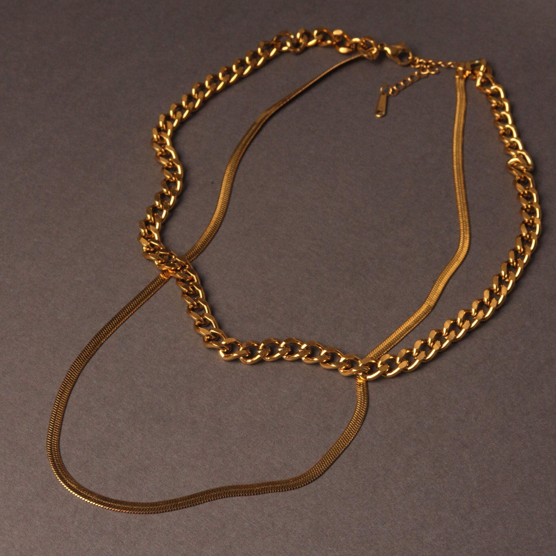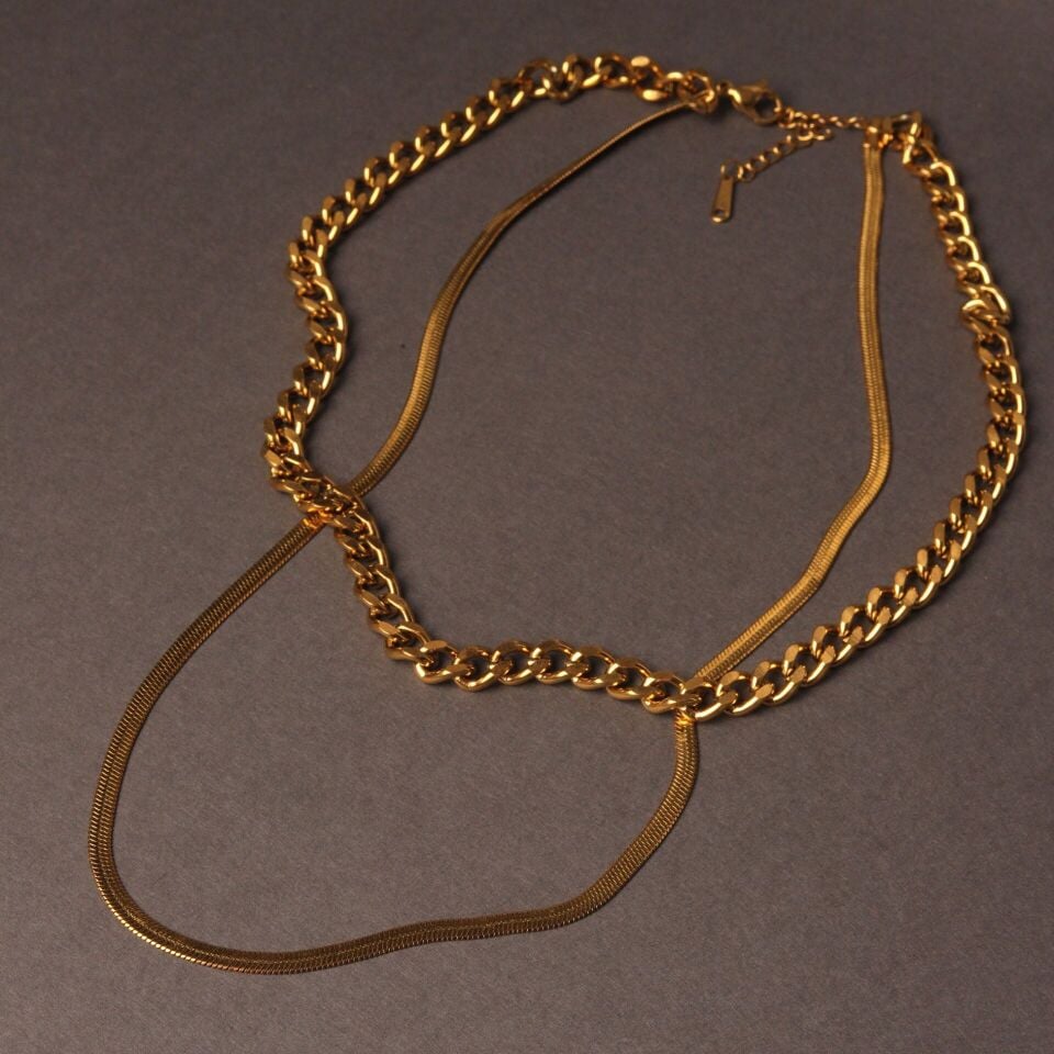 Neesa Çelik Gold İtalyan Zincir Çoklu Kolye 45 cmGold