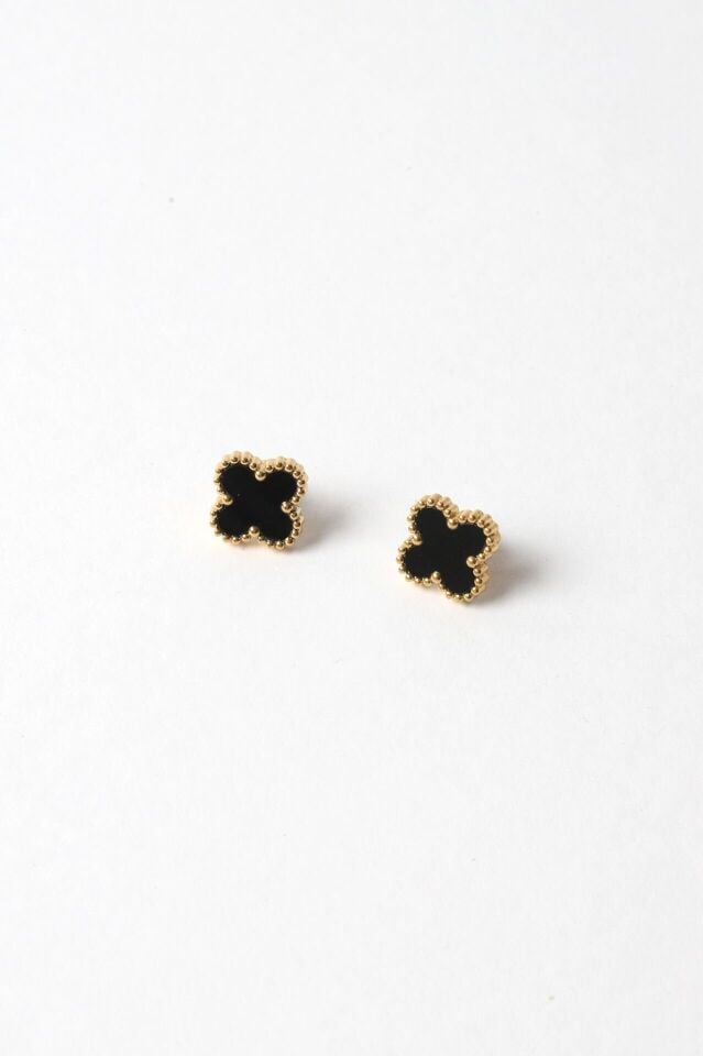 Neesa Çelik Gold-Siyah Yonca Küpe Gold