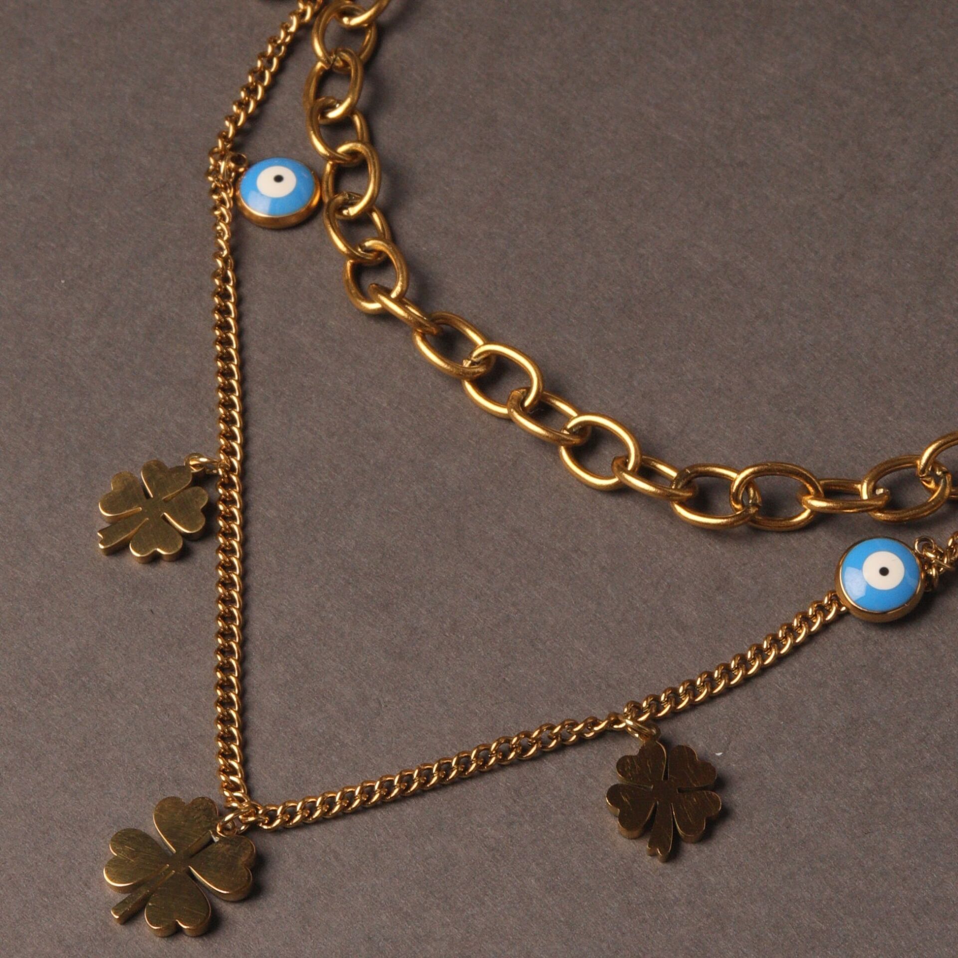 Neesa Çelik Gold Zincir Çoklu Yonca Kolye 45 cm Gold