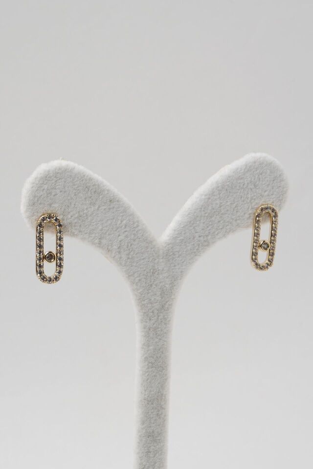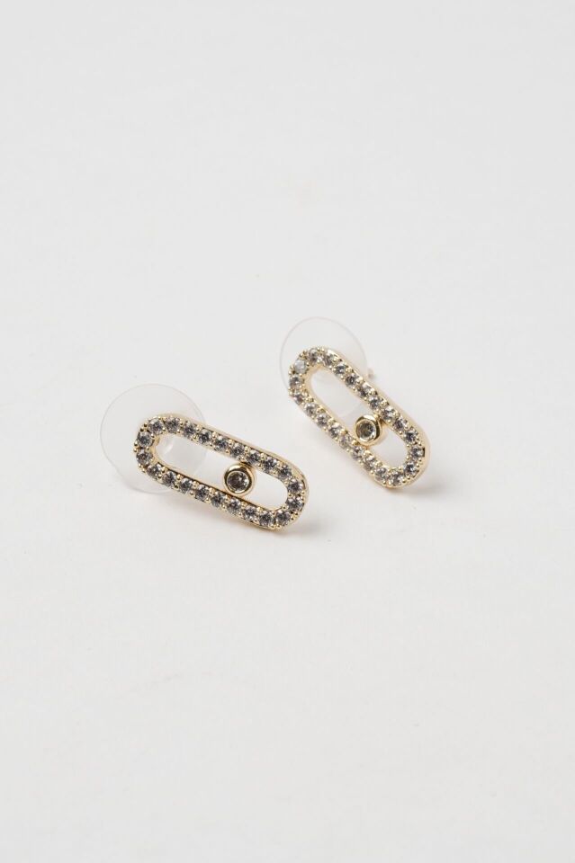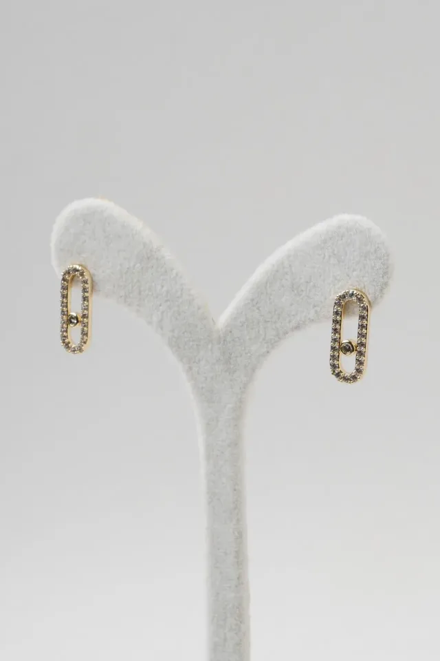 Neesa Çelik Marka Model Küpe Zirkon TaşlıGold Gold