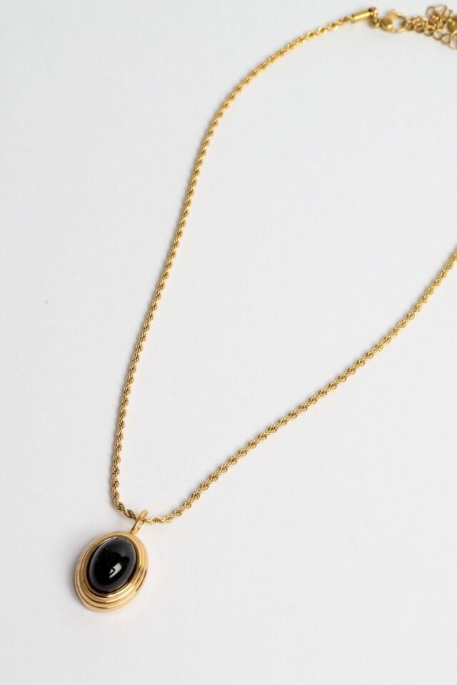 - Neesa Çelik Siyah Taşlı Gold Kolye 40+5cm