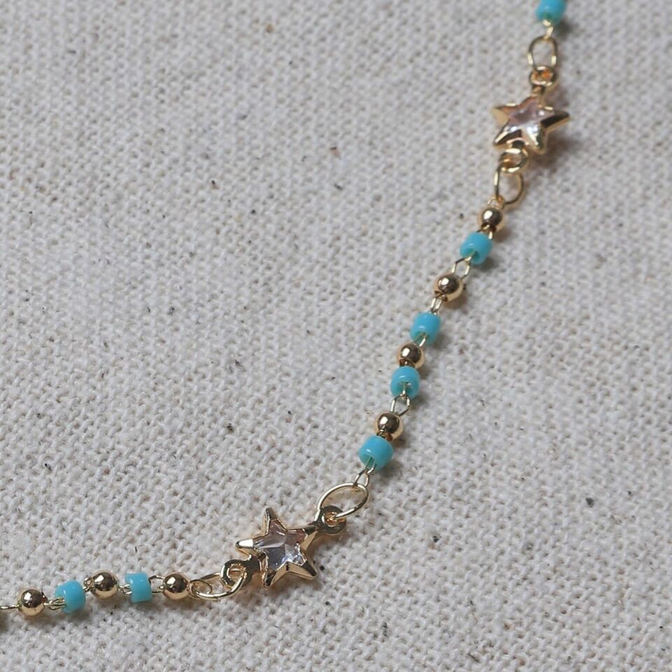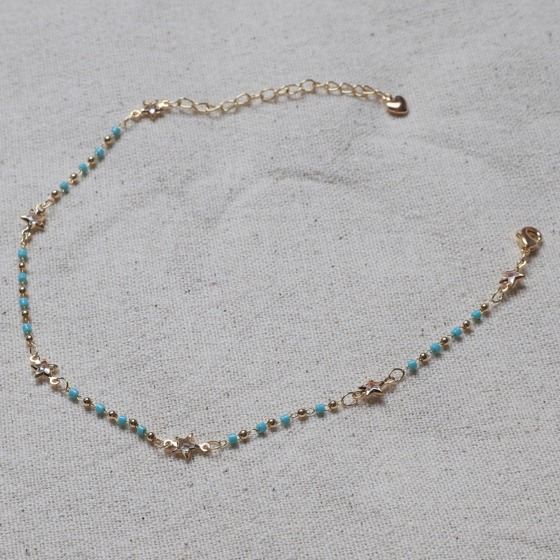 Neesa Çelik Turkuaz Yıldızlı Boncuklu Halhal 22+5cmİnce