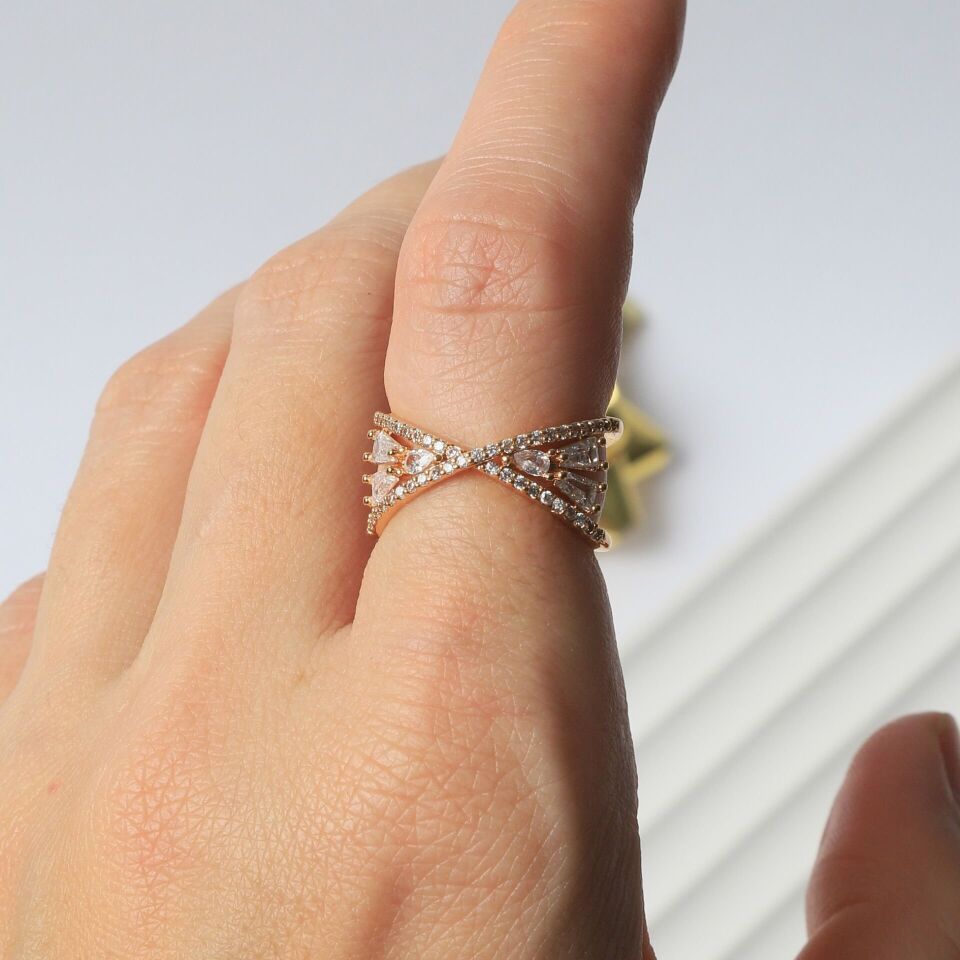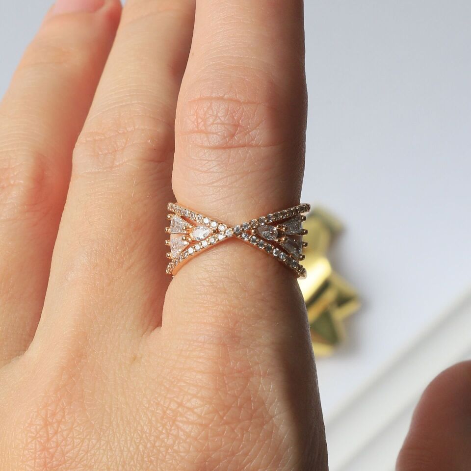 Neesa Çelik Yüzük Zirkon TaşlıGold Gold
