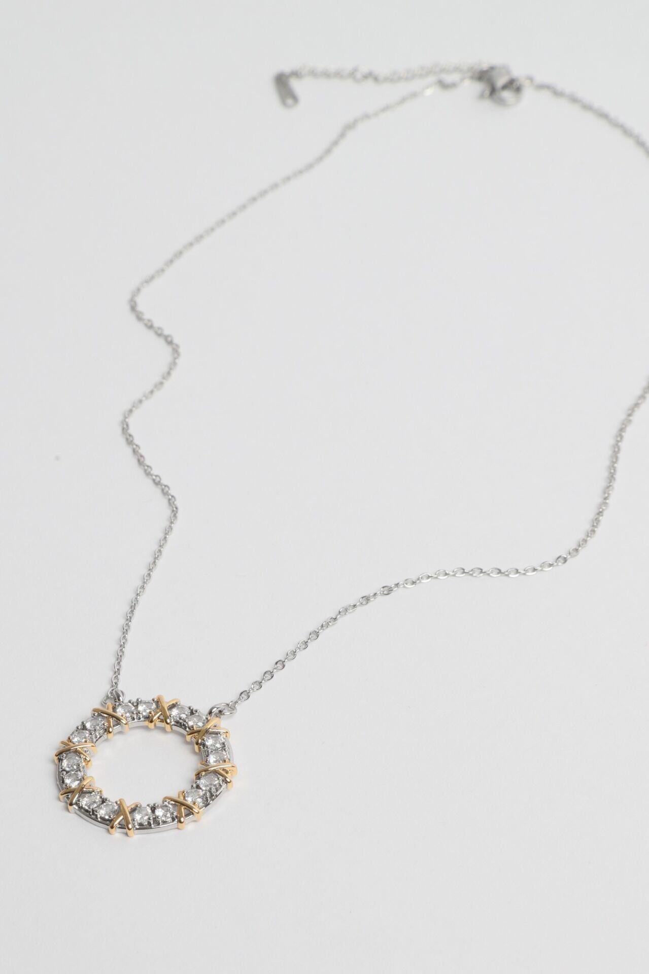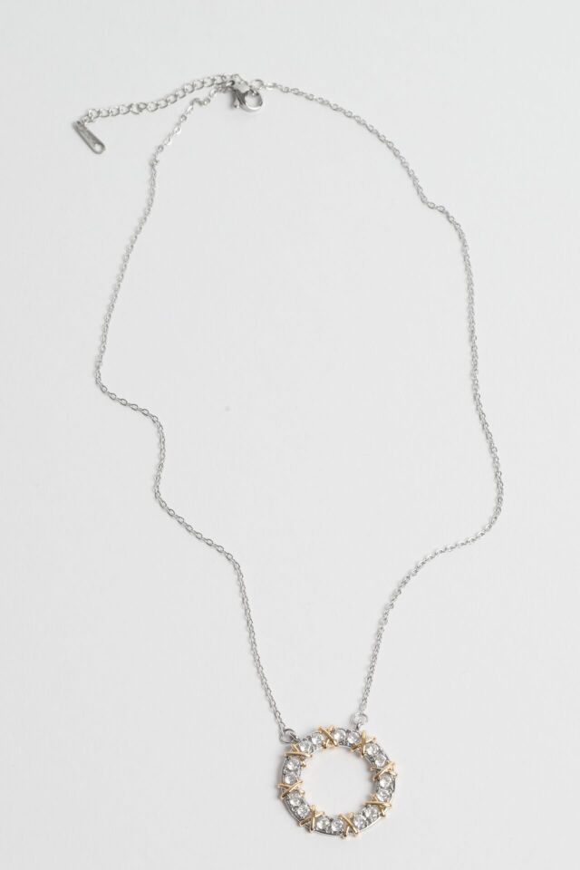 Neesa Çelik Zirkon Taşlı Halka Silver Kolye 40+5cmSilver