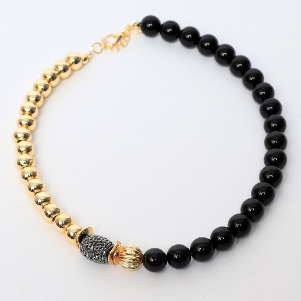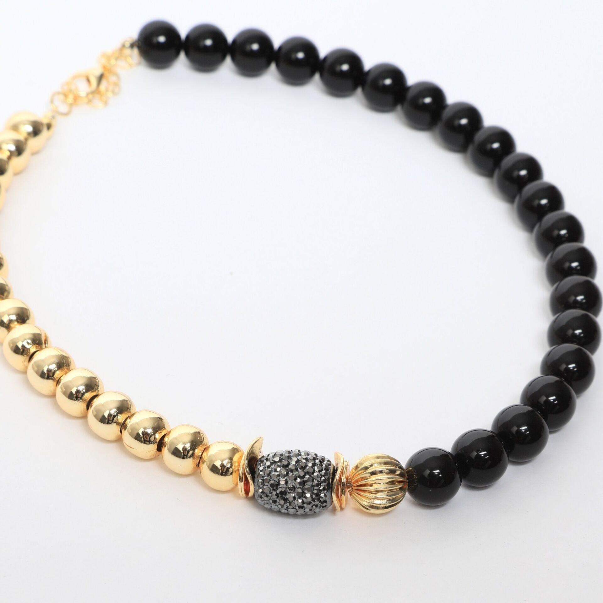 Neesa Gold Detaylı Siyah Boncuk Kolye 40+5CMSiyah