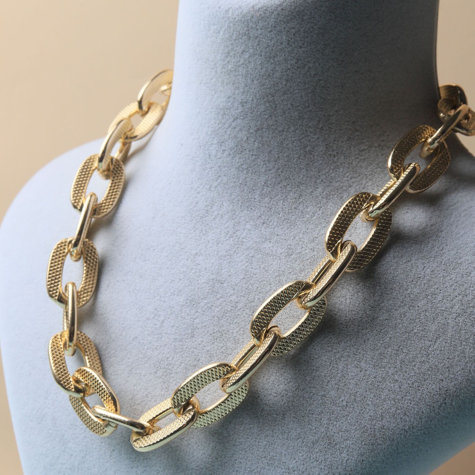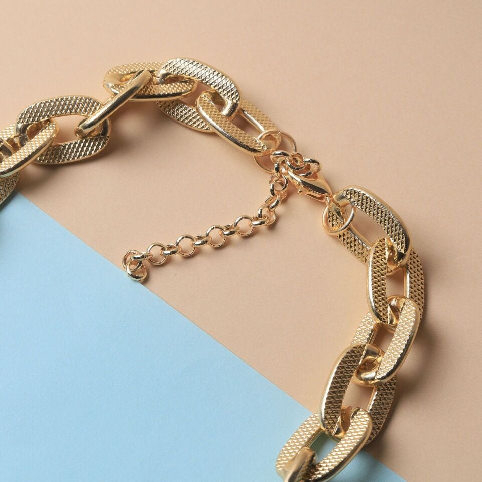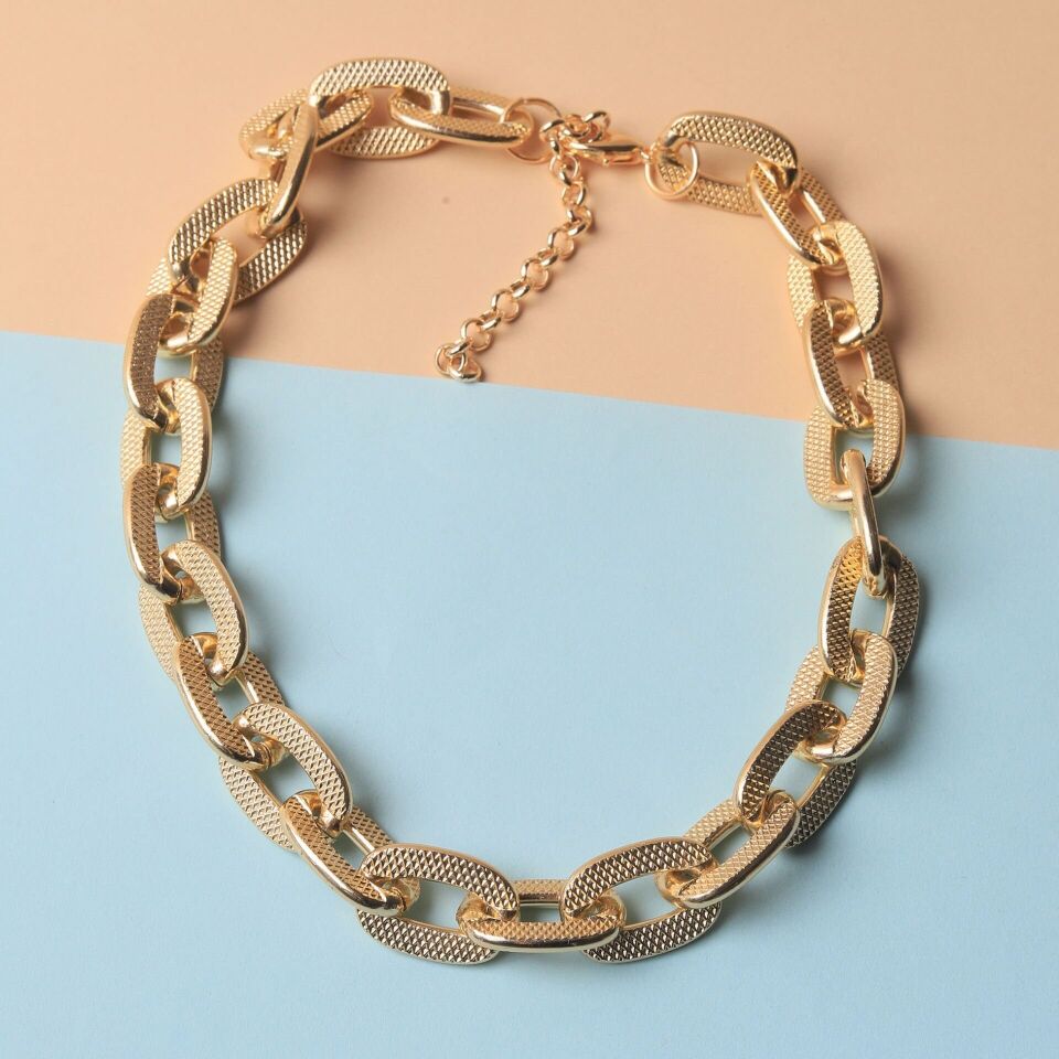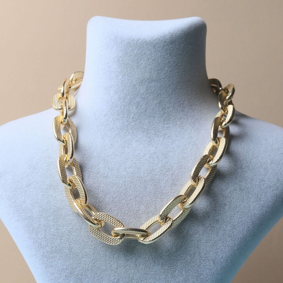 Neesa Gold Dikdörtgen Zincir Kolye 42+7cmGold