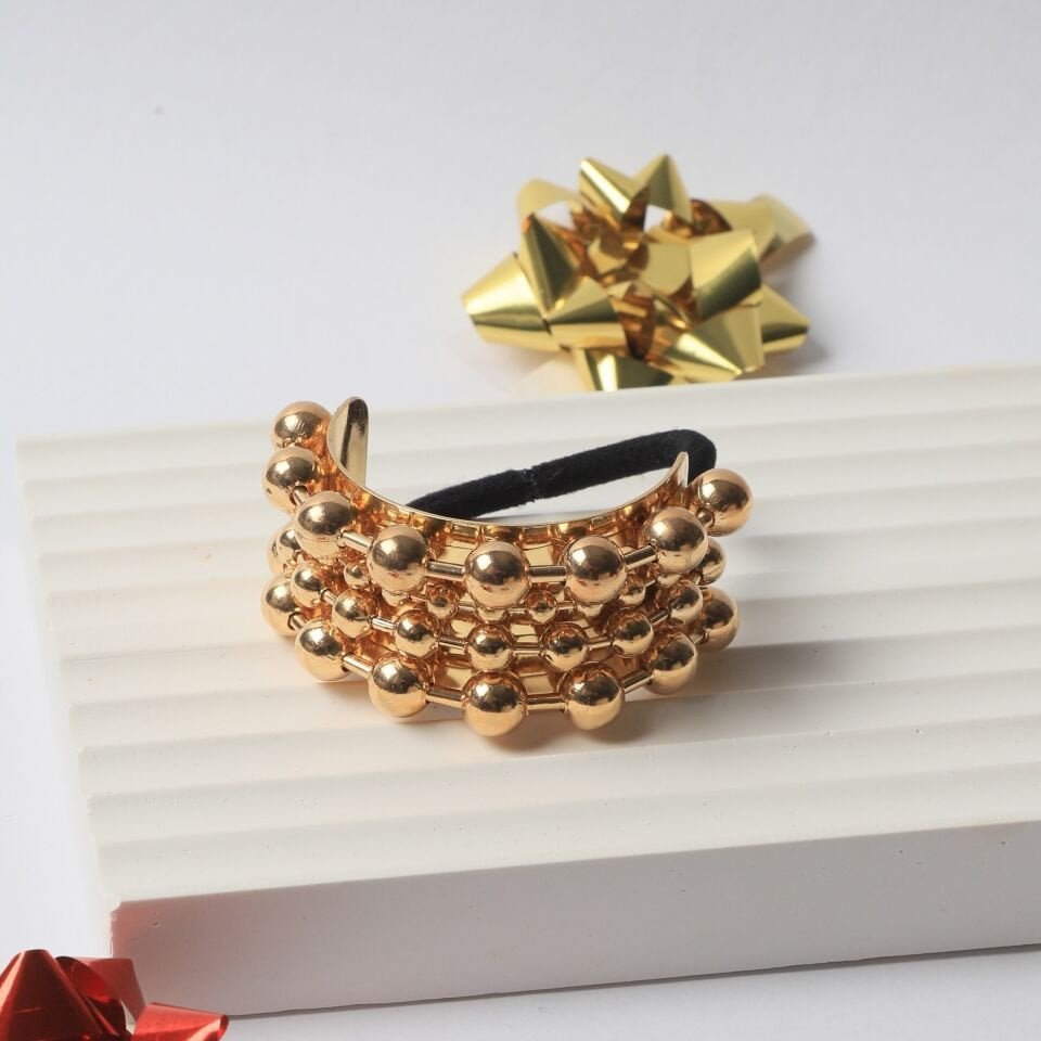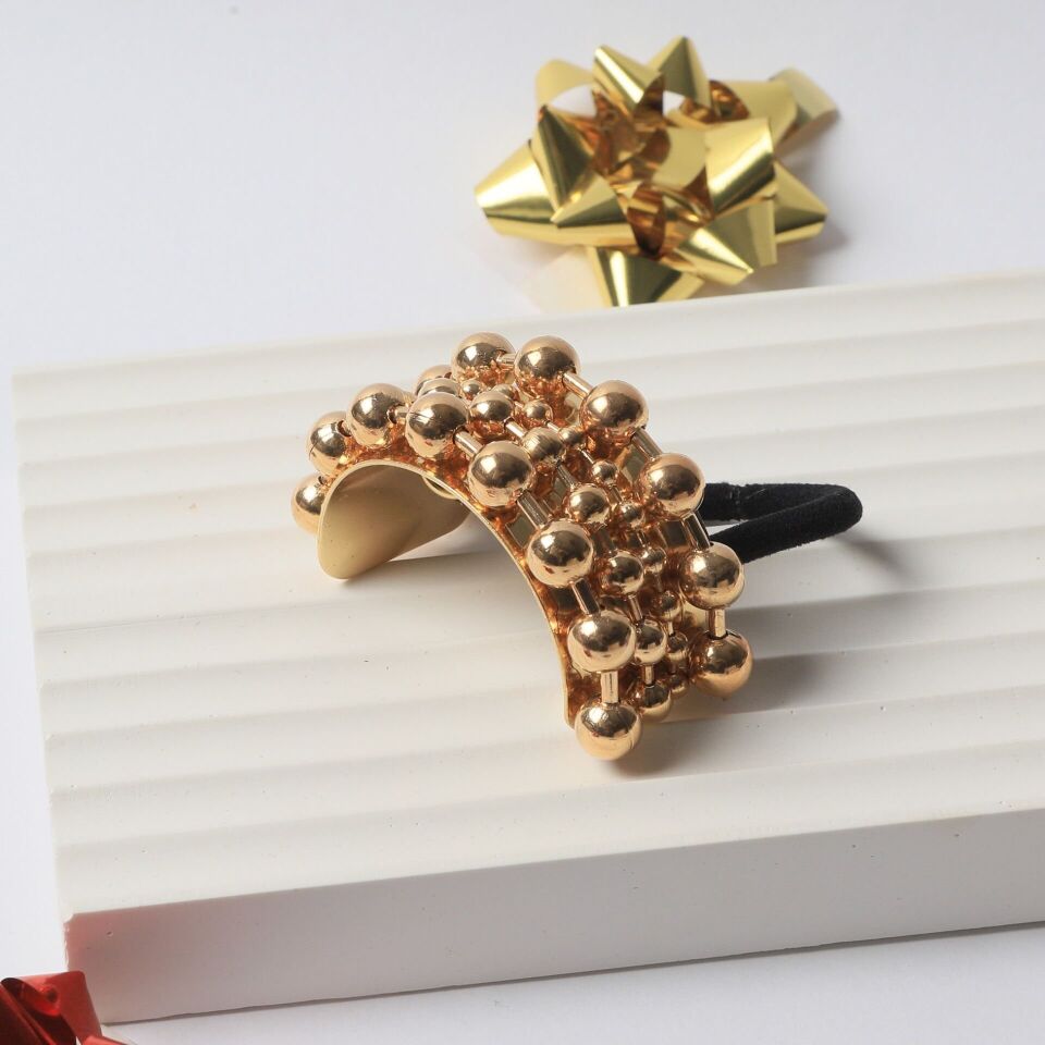 Neesa Gold Topçuklu Lastik Toka Beyaz