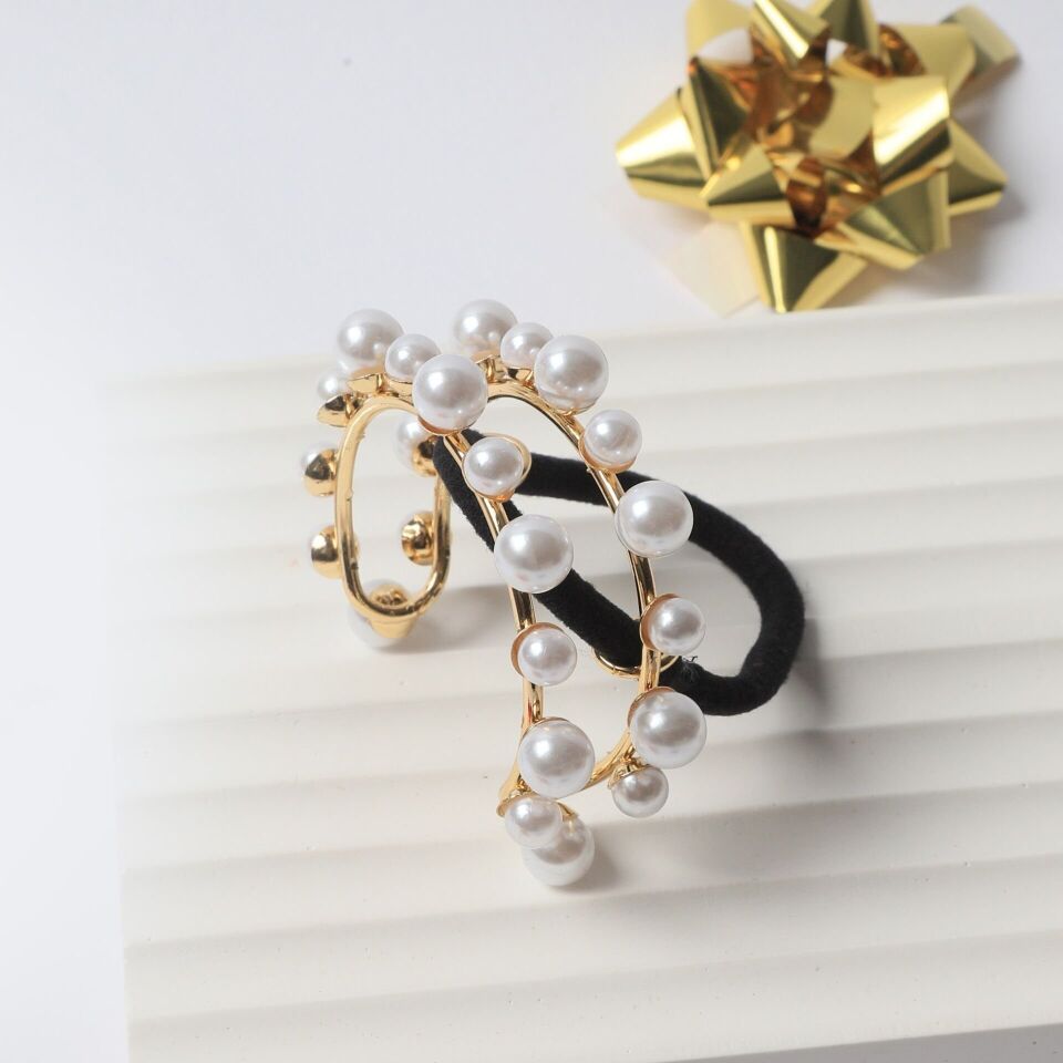 Neesa İnci Taşlı Luxury Lastik TokaBeyaz