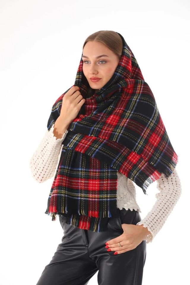- Neesa Kırmızı Yeşil Siyah Ekoseli Şal 70x180