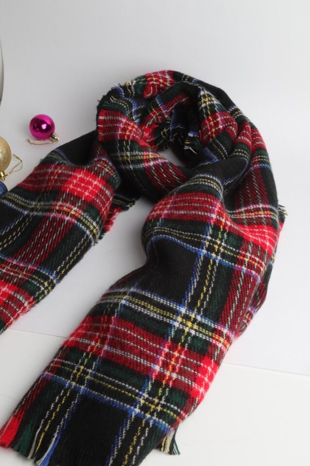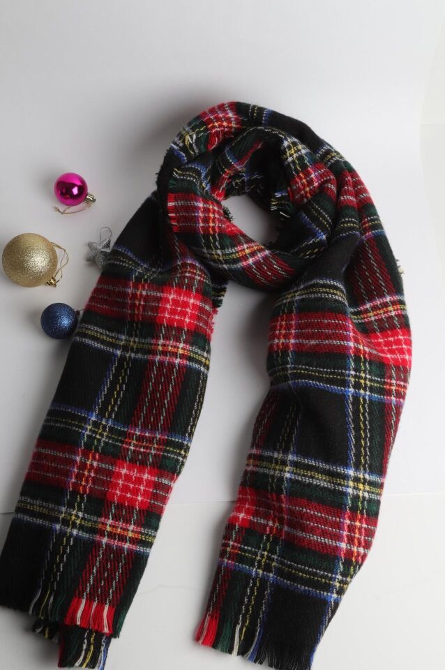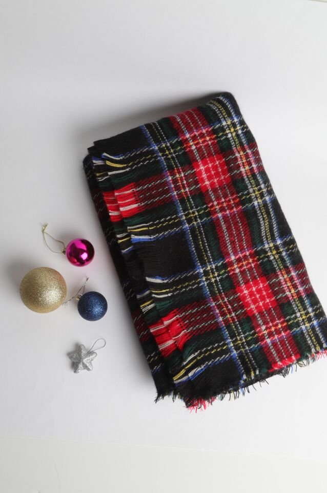 Neesa Kırmızı Siyah Yeşil Ekoseli Şal 70x180