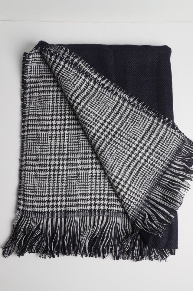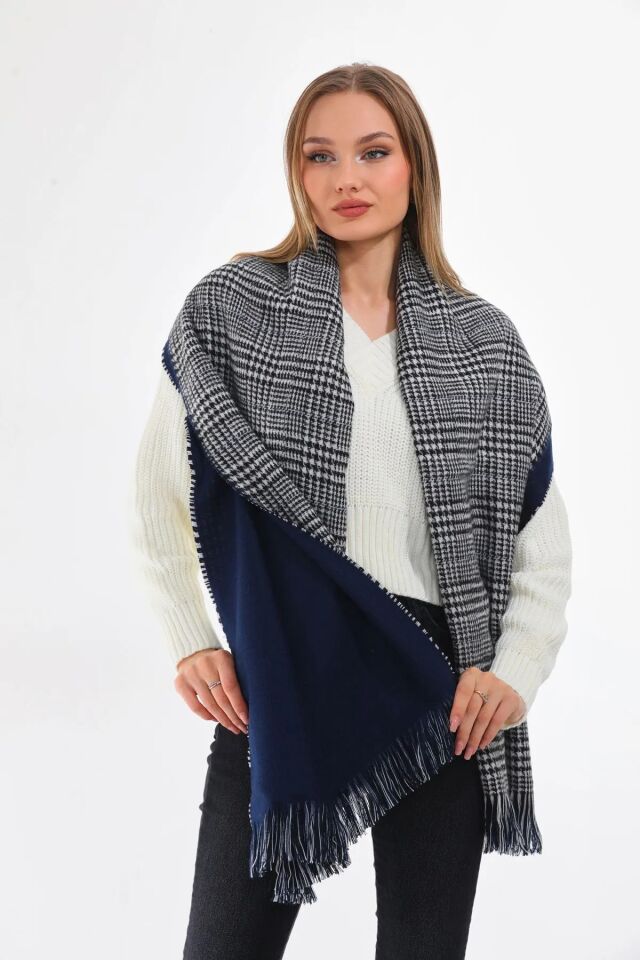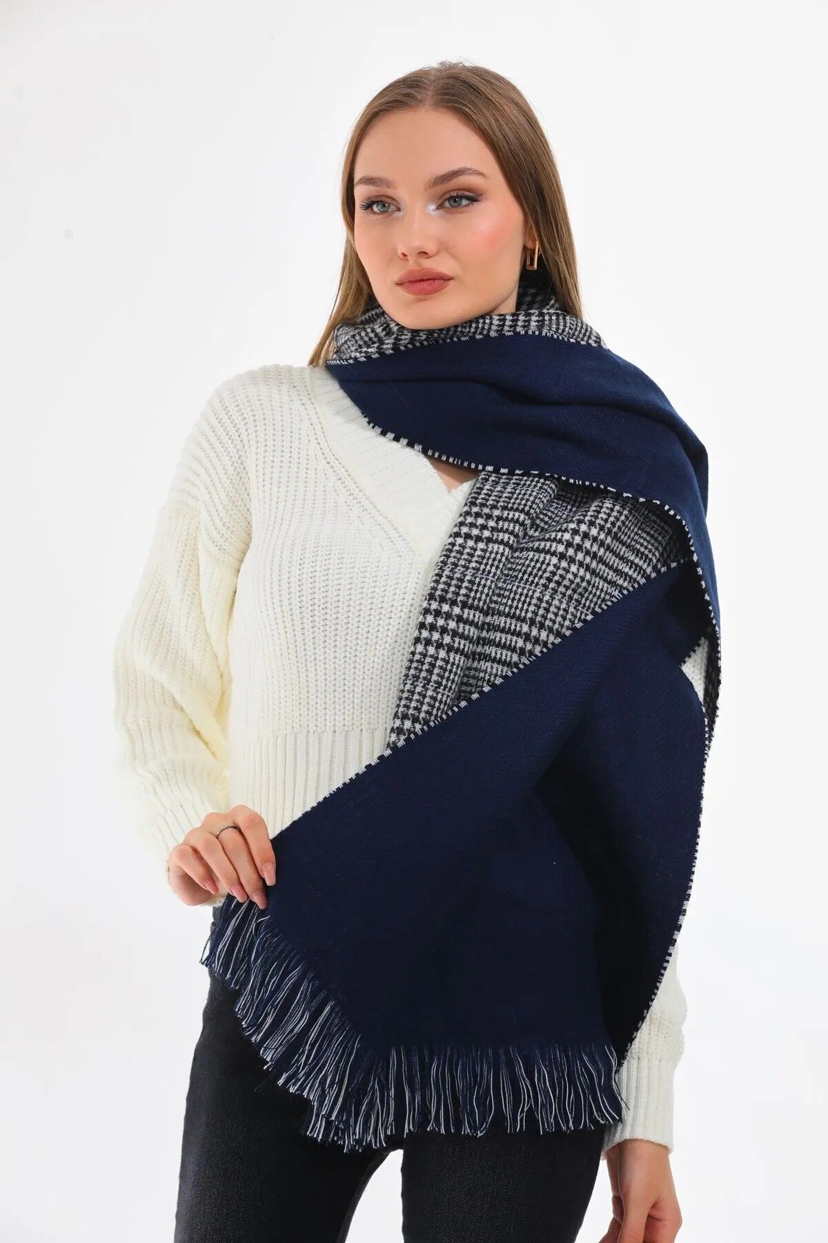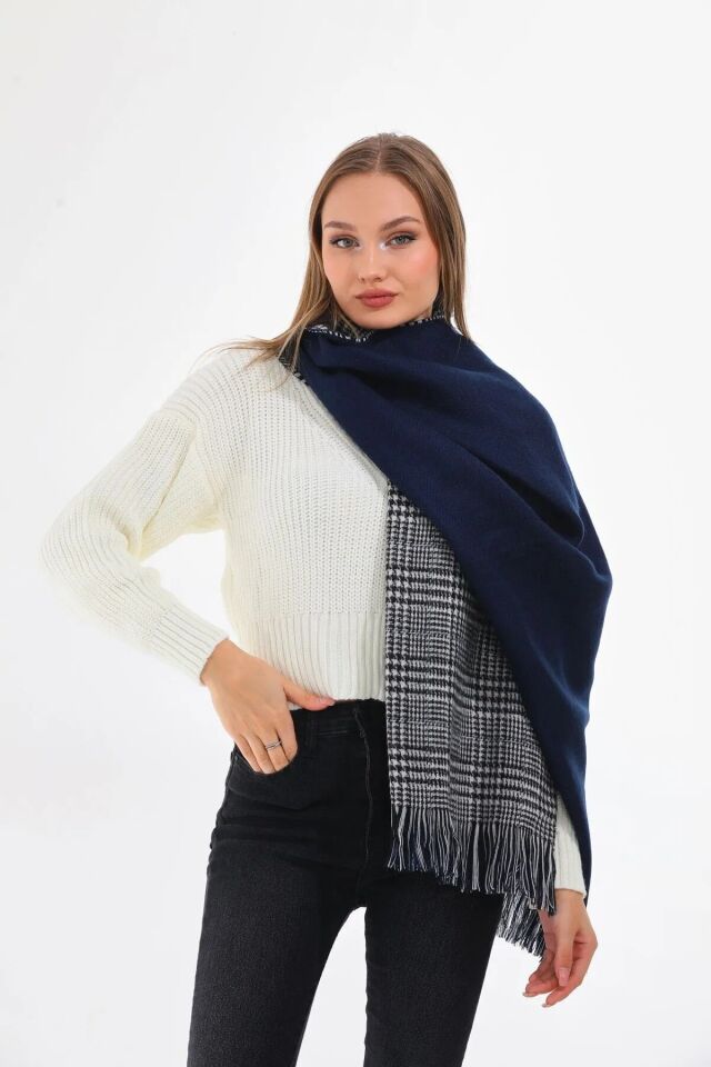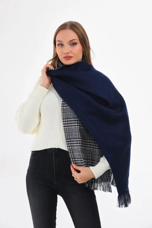 Neesa Lacivert Çift Taraflı Ekoseli Şal 70x180