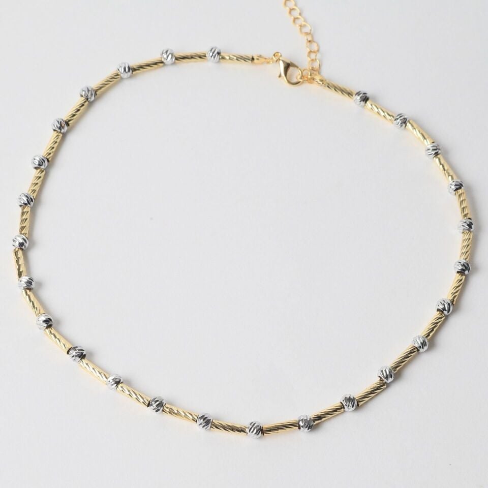Neesa Özel Seri Topçuk Kolye Borulu Dorika 40+5cmSilver-Gold