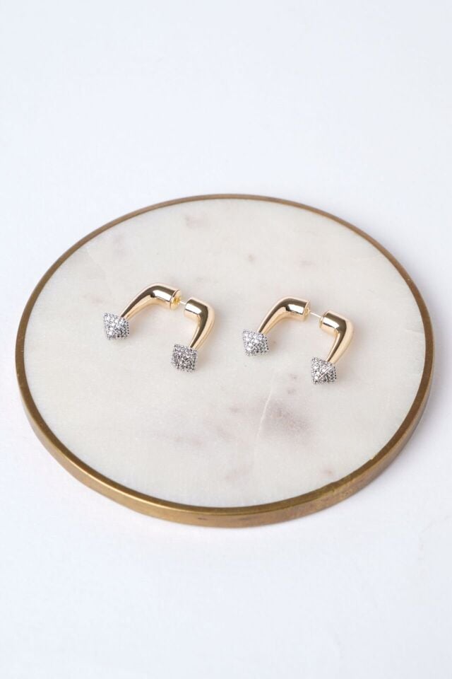 - Neesa Özel Seri Zirkon Taşlı Piramit Uçlu Küpe Gold
