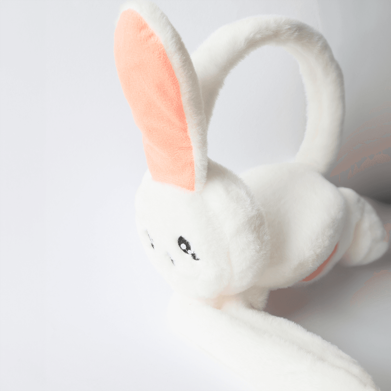 Neesa Peluş Hareketli Tavşan Kulaklık,YüzlüGri Beyaz