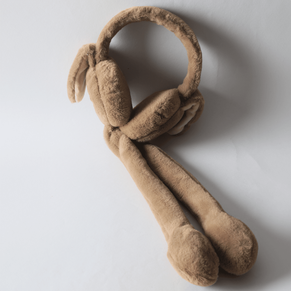 Neesa Peluş Hareketli Tavşan Kulaklık,YüzlüGri Kahverengi