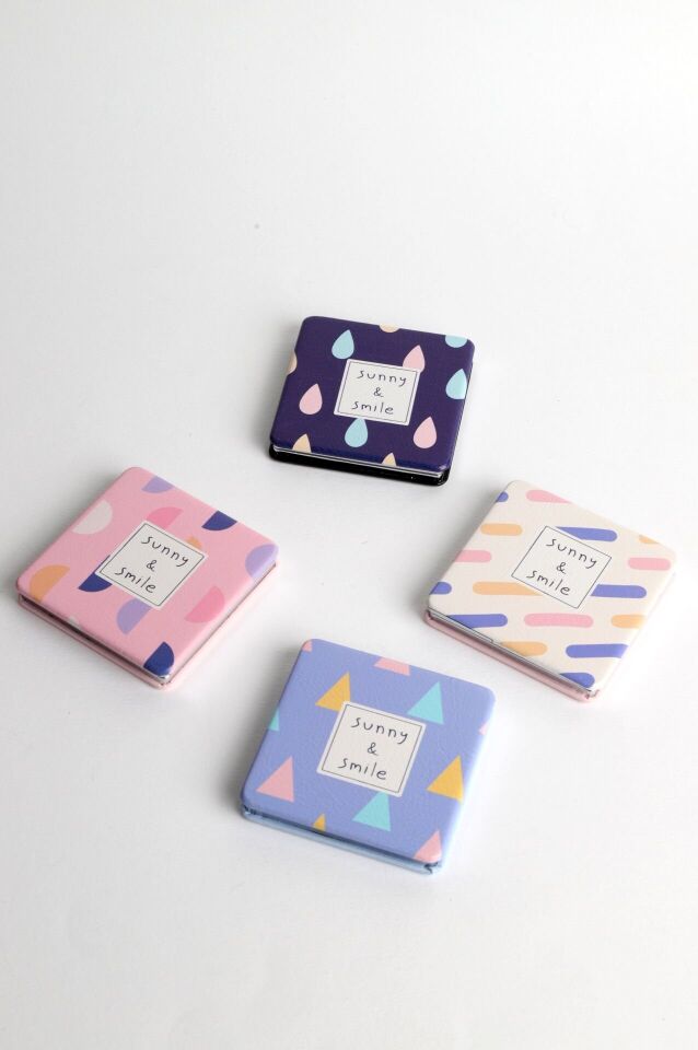 Neesa Renkli Cep Aynası 6x6 cmMavi Ekru