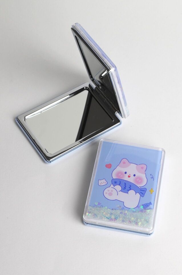 Neesa Renkli Sulu Cep Aynası Dikdörtgen 8,5x6 cmMavi Açık Mavi