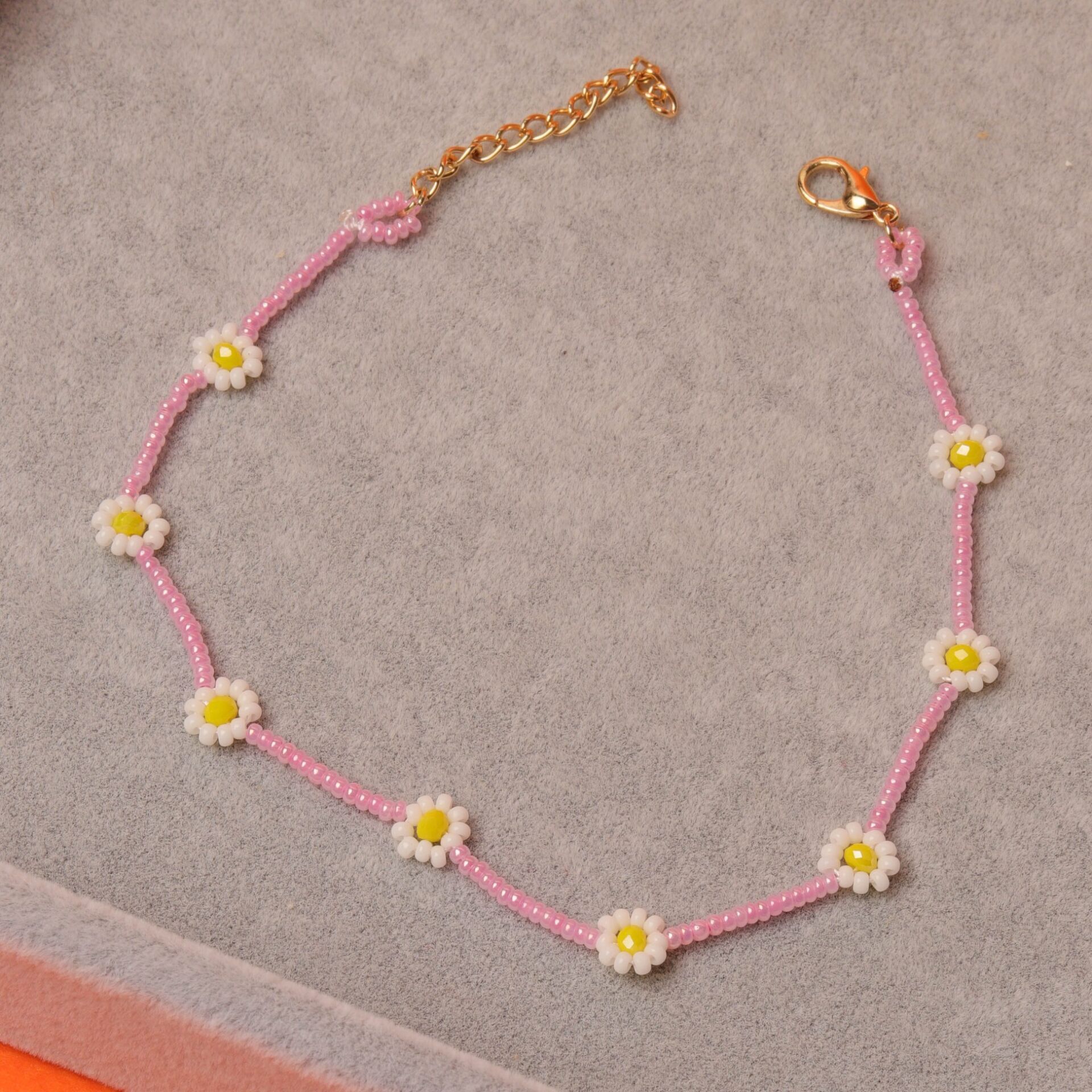 Neesa Sarı Papatya Boncuk HalHal 22,5+3,5 CmTuruncu Pembe