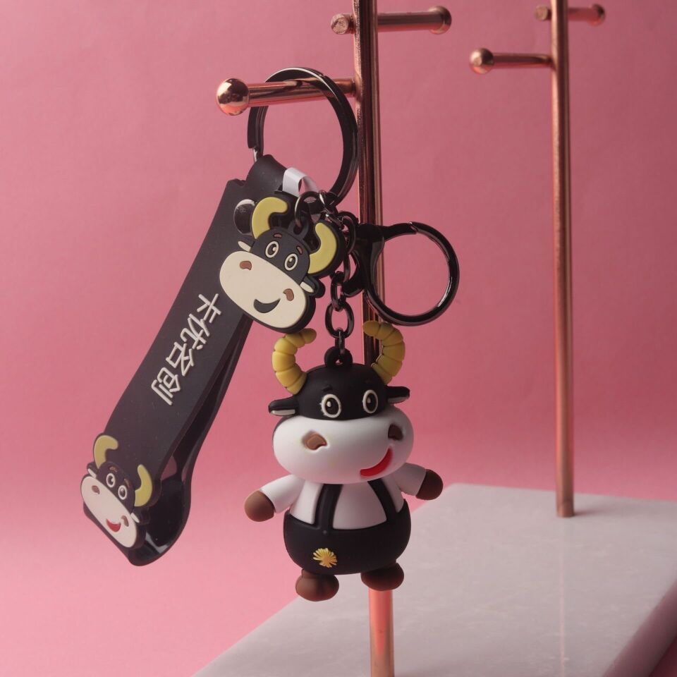 Neesa Sevimli Mini Siyah İnek Silikon Anahtarlık ve Çanta Aksesuarı