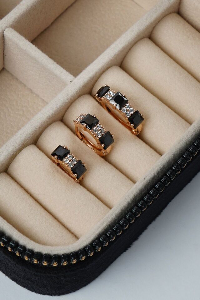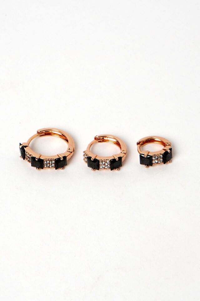 Neesa VIP 3'lü Halka Set Zirkon Taşlı Gold Küpe Yeşil Siyah