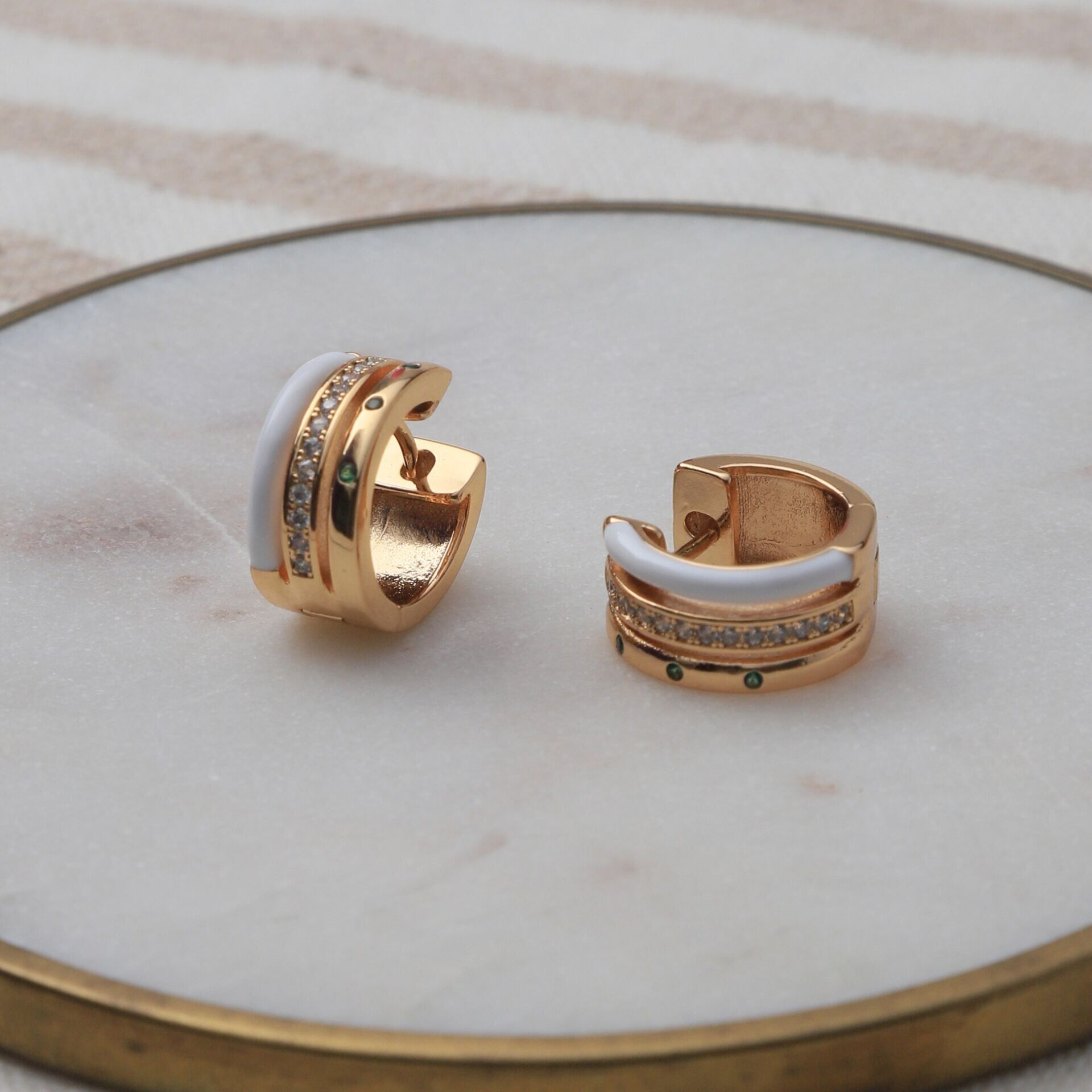 Neesa VIP Gold Zirkon Taşlı Halka Küpe 1.5 CmMor Beyaz
