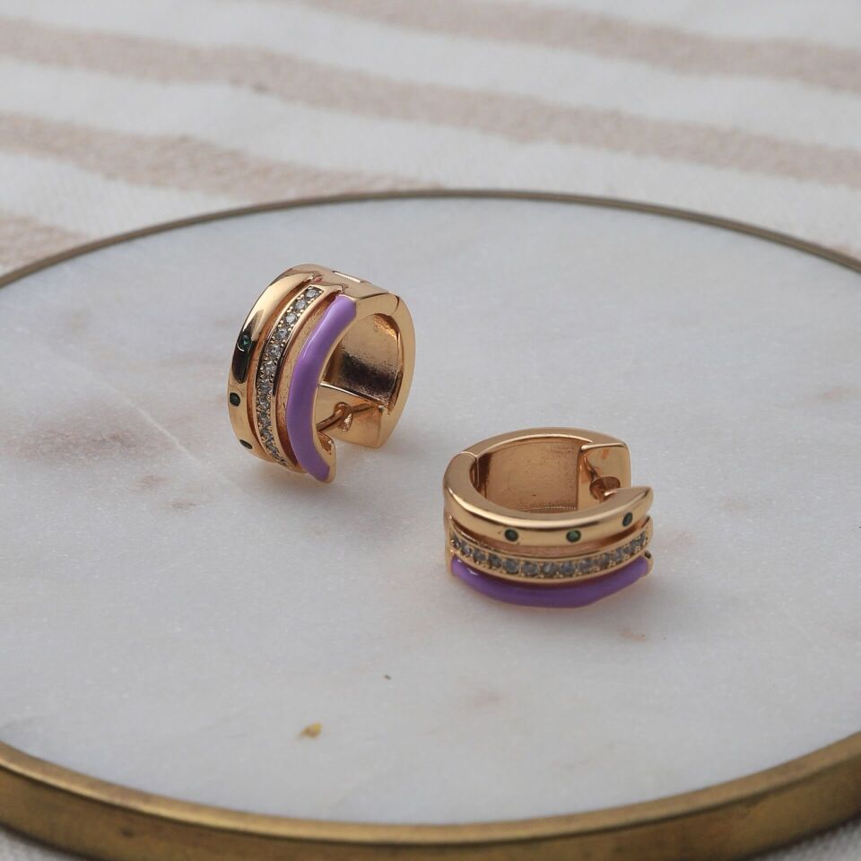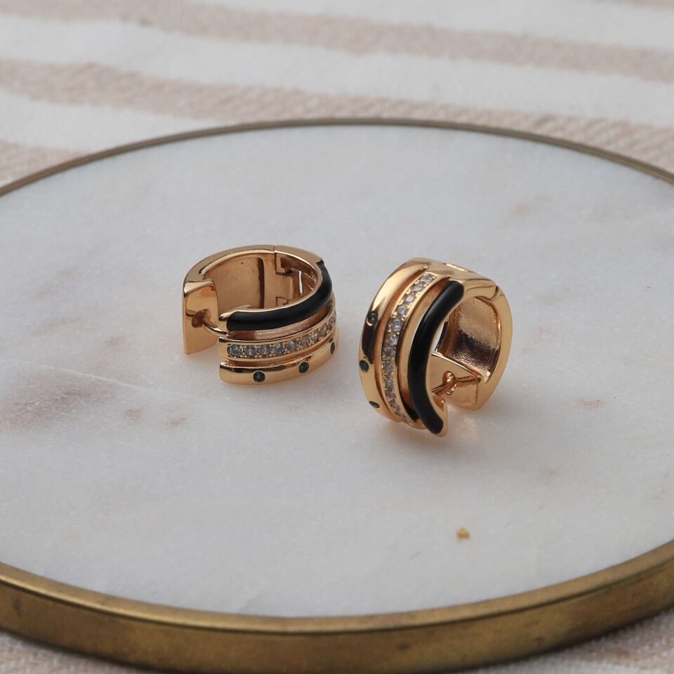 Neesa VIP Gold Zirkon Taşlı Halka Küpe 1.5 CmMor Siyah