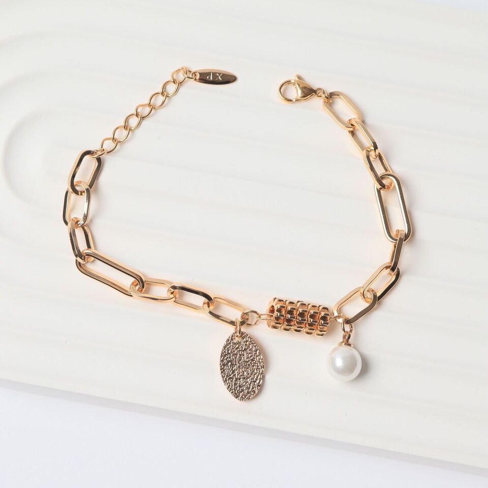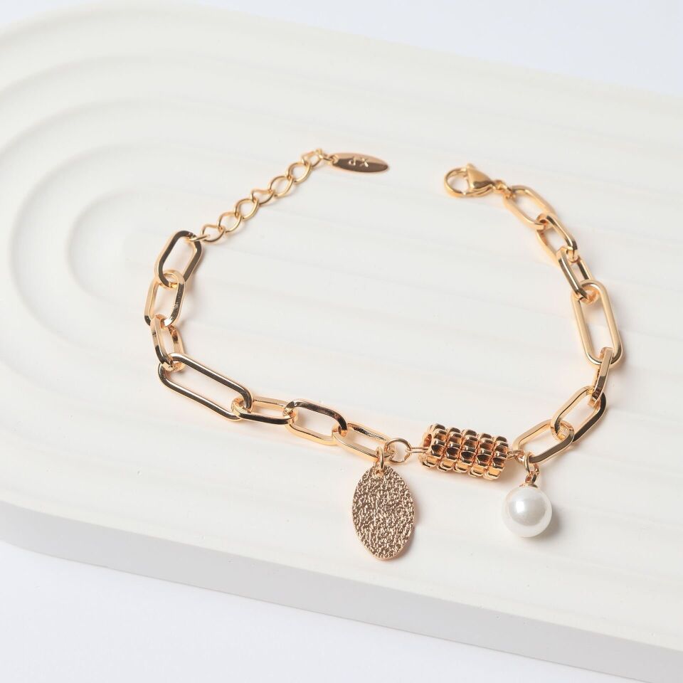 Neesa VIP İnci Taneli Bileklik 17+3cm GoldGold