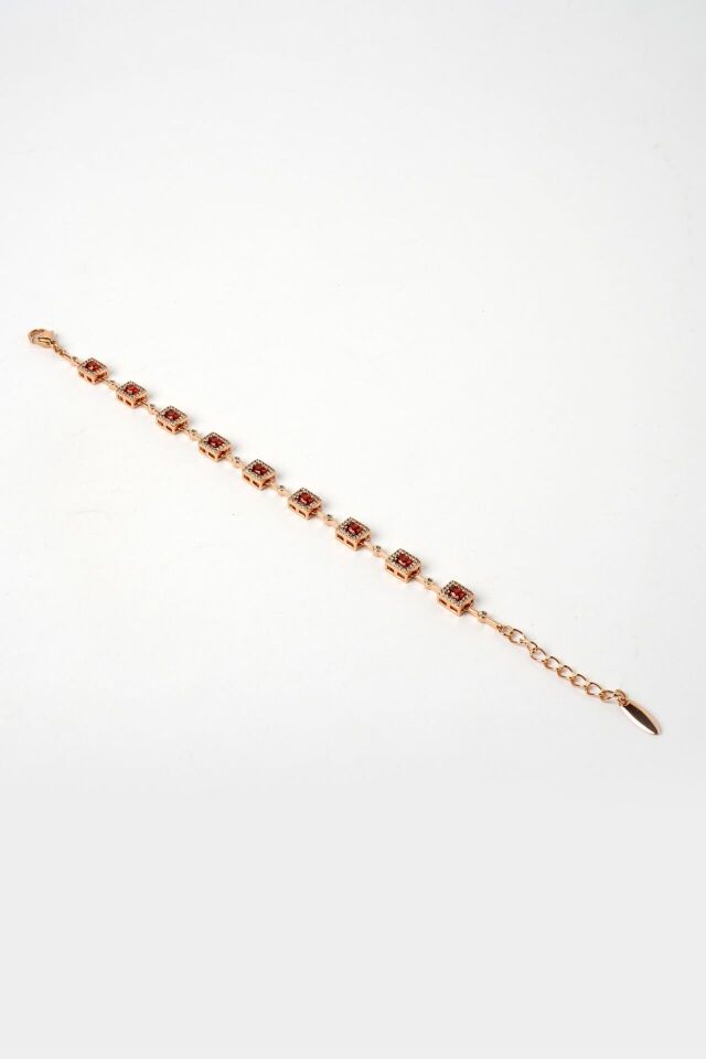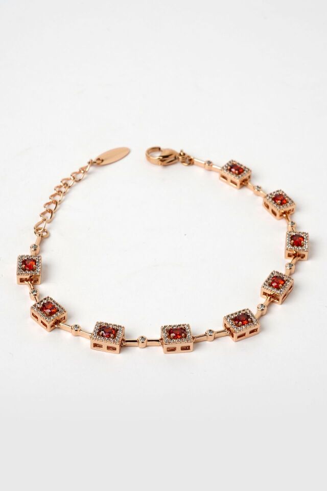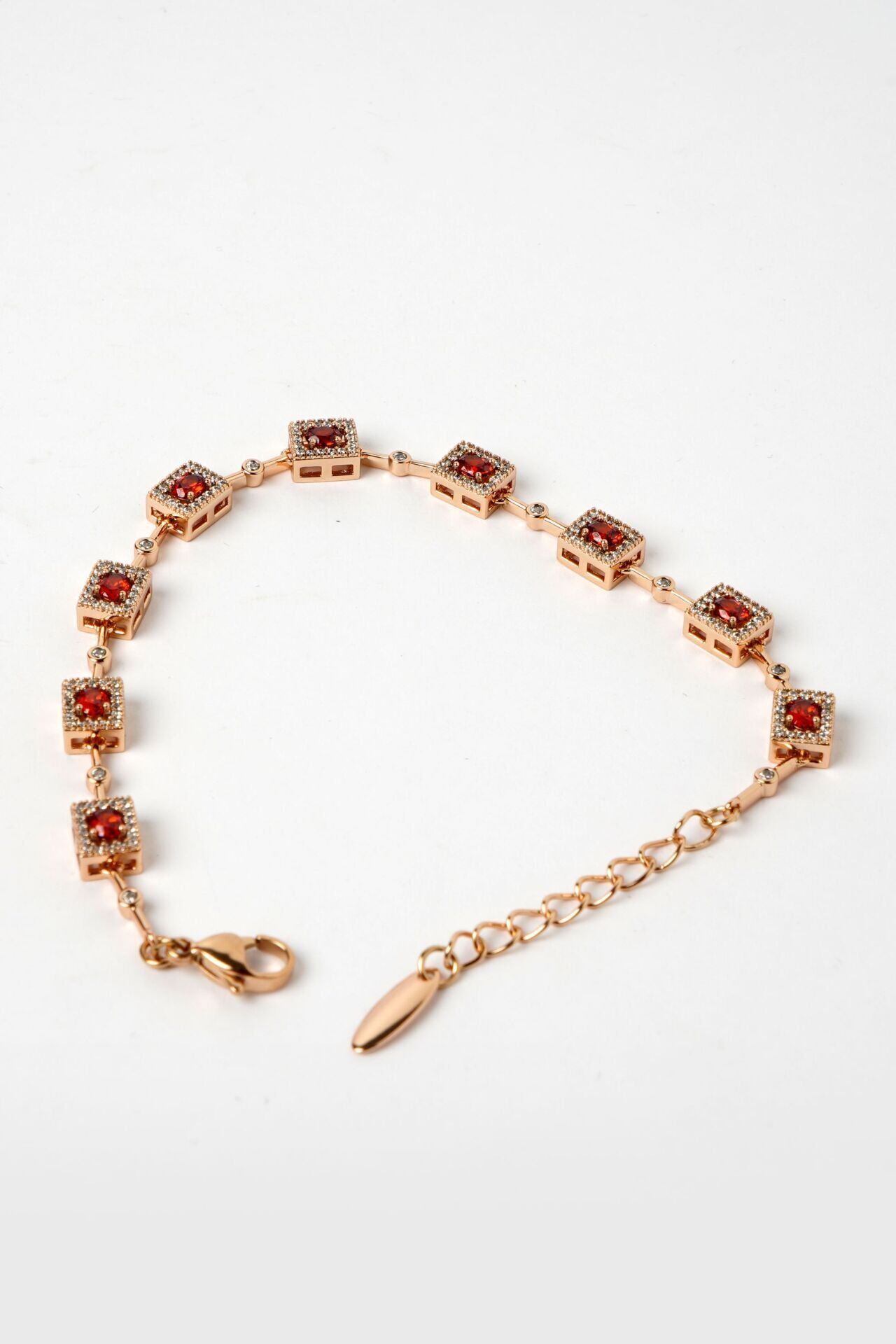Neesa VIP Kare Zirkon Taşlı Gold Bileklik 21,5 cmLacivert Kırmızı