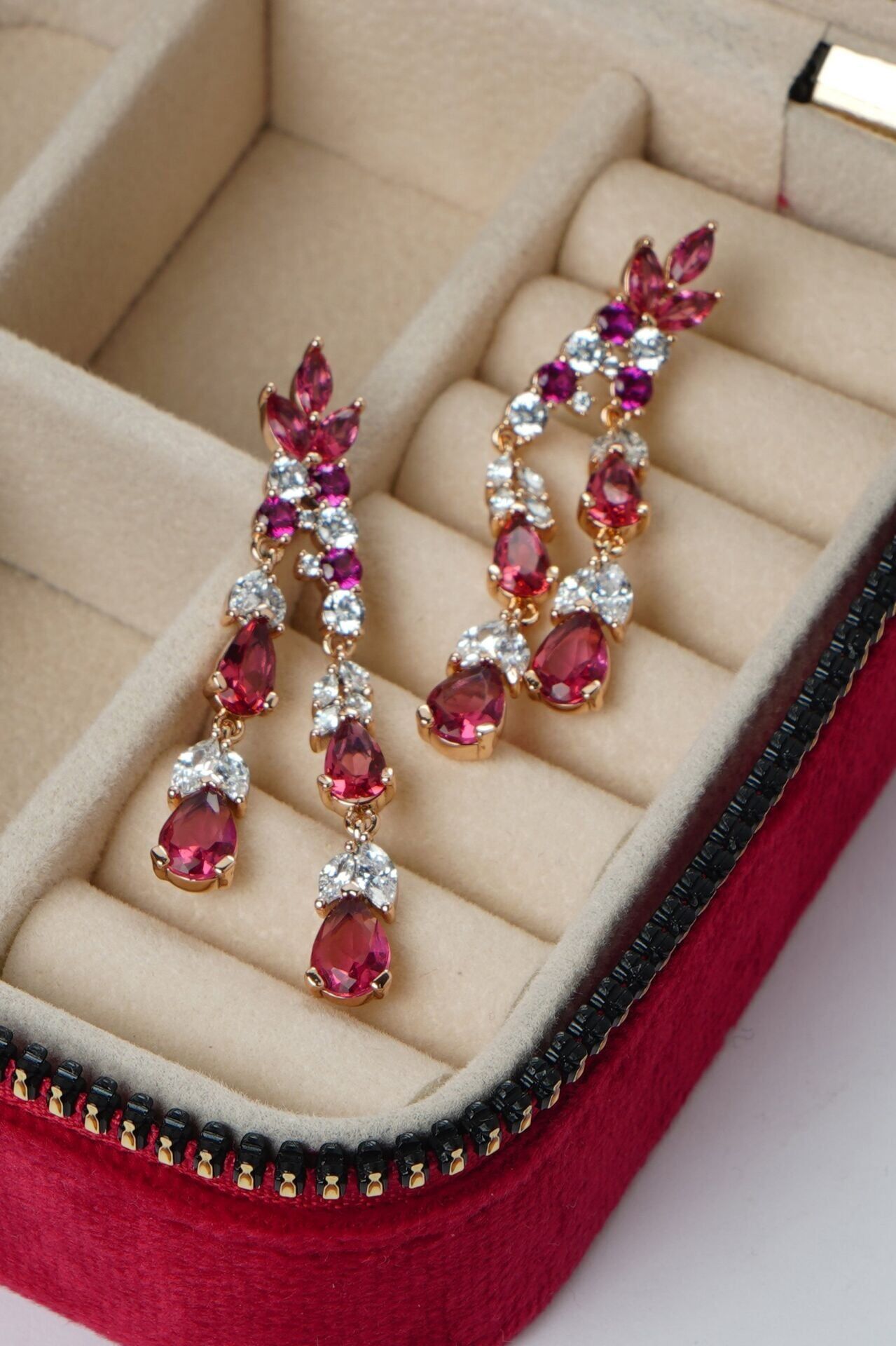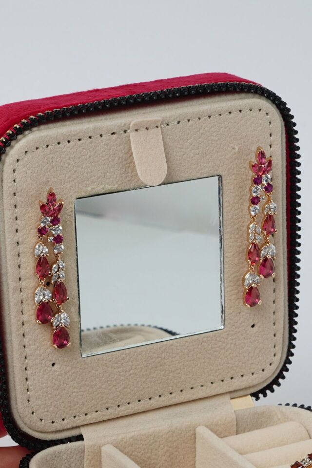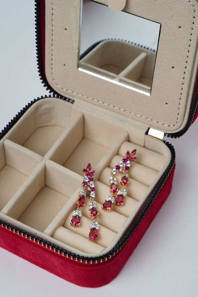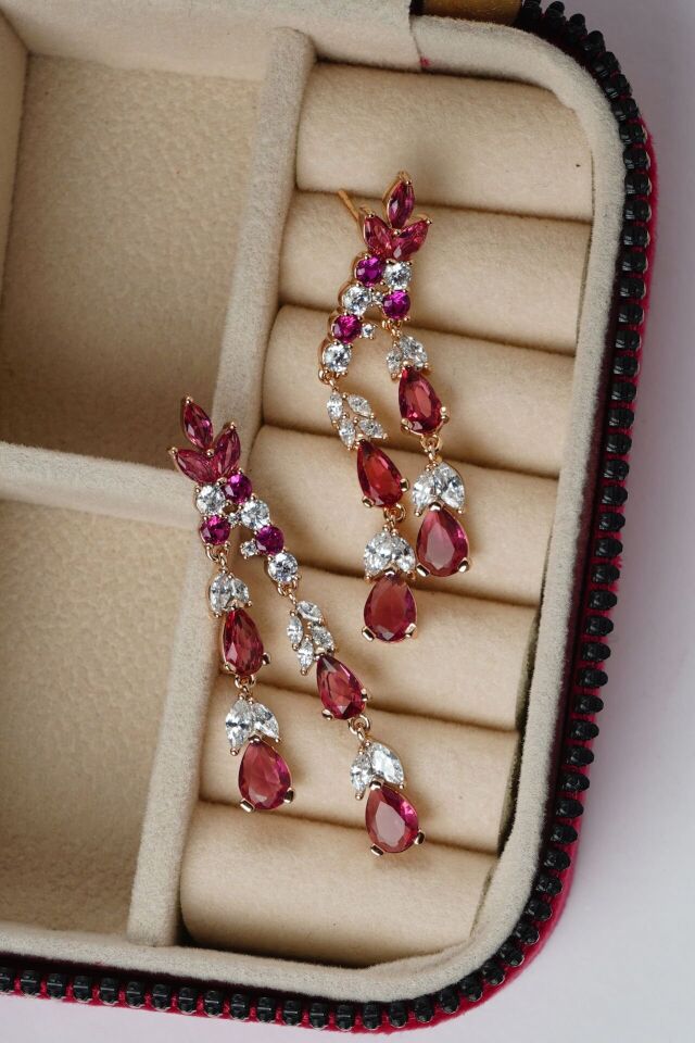 - Neesa VIP Sallantılı Damla Model Pembe Taşlı Gold Küpe