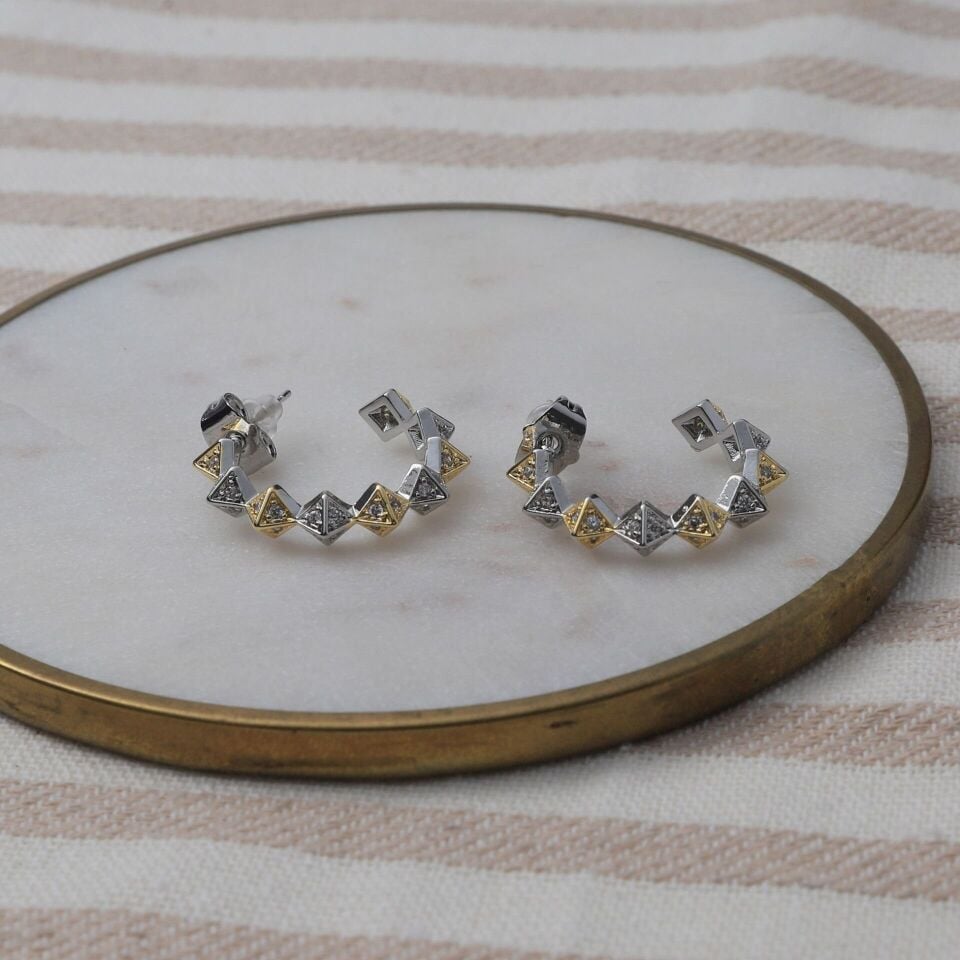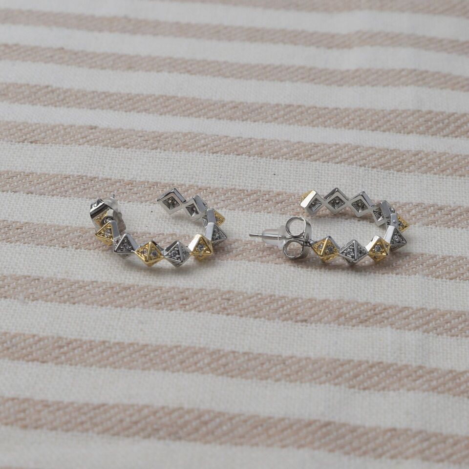 Neesa VIP Sıralı Üçgen Halka Küpe 1.7 CmSilver-Gold