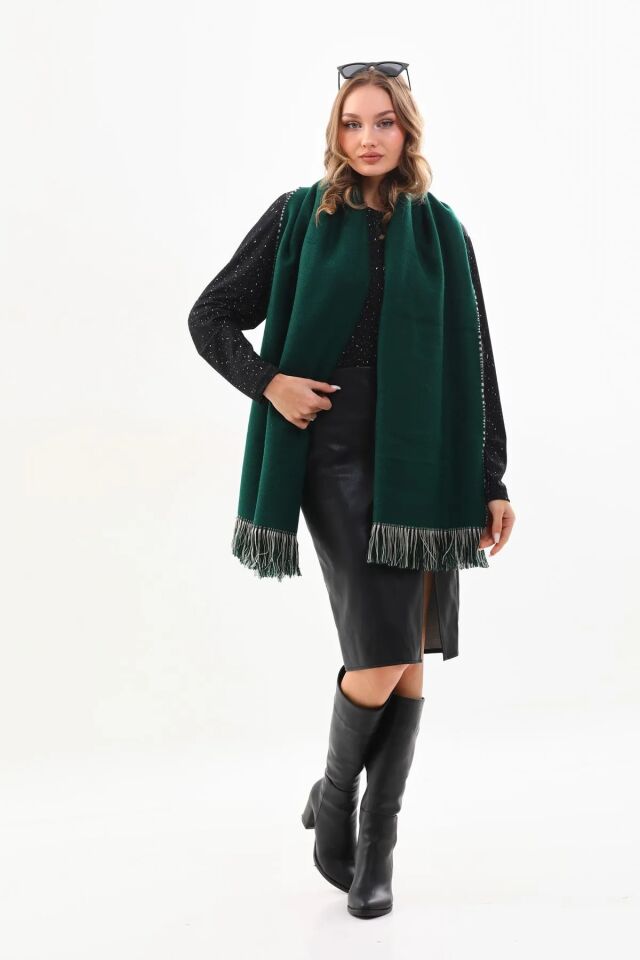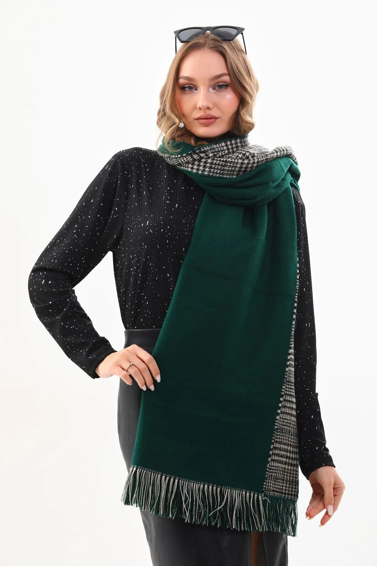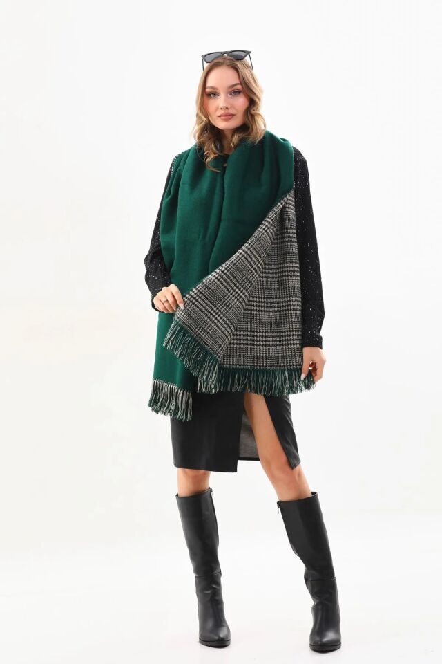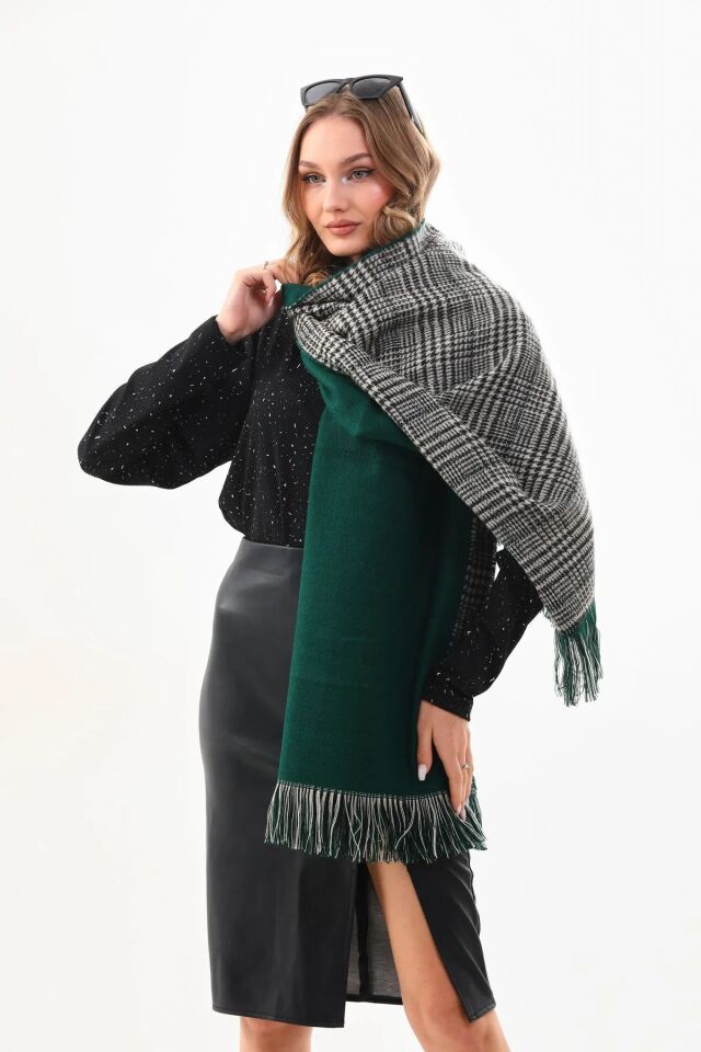 - Neesa Yeşil Çift Taraflı Ekoseli Şal 70x180