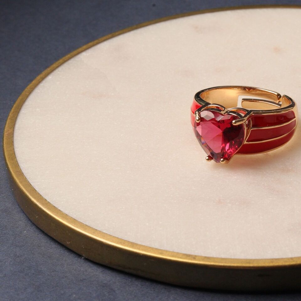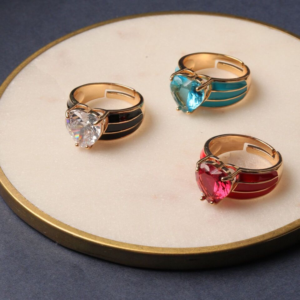 Özel Seri Kalp Taşlı YüzükAçık Mavi Kırmızı